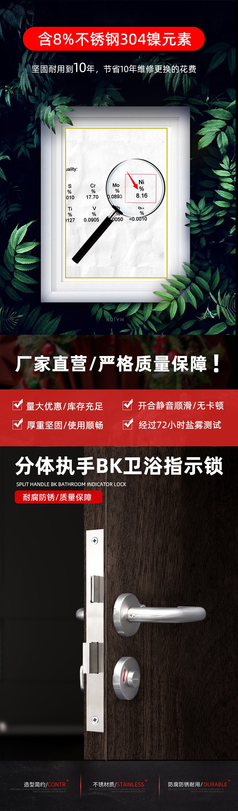 RTH-01 不锈钢分体卫生间红绿指示锁