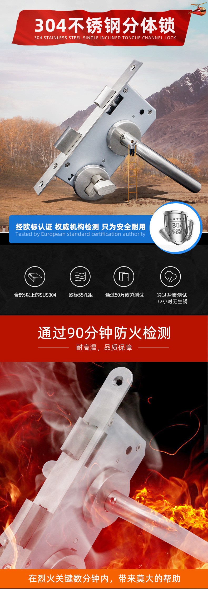 RTH-02 不锈钢大葫芦欧标分体把手防火锁