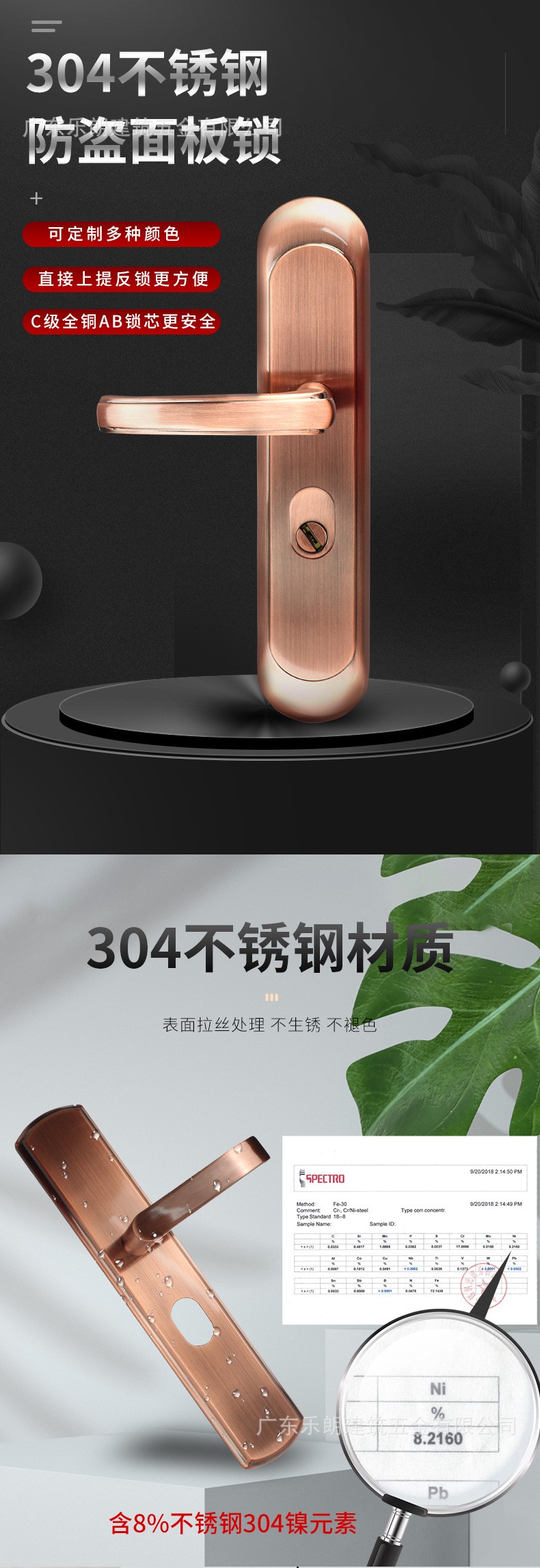 RXL-03-03 红古铜不锈钢304入户防盗面板锁